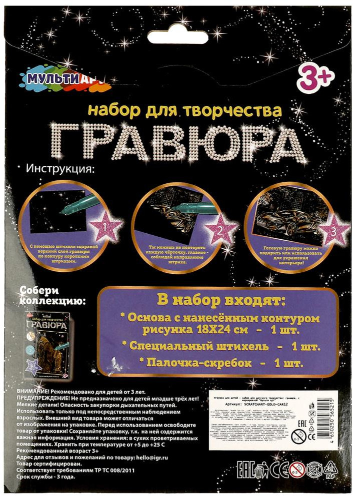 💳 Оплатить за товар можно при получении 🇰🇿 Есть бесплатная доставка по Казахстану 🎁 Копите бонусы с каждой покупки Набор для творчества — гравюра «Машина» ТМ «Мульти Арт» — отличный подарок для ребёнка, который будет способствовать развитию его творческих способностей.С помощью данного набора юный художник сможет создать эффектную золотистую картину на чёрном фоне. Контур рисунка уже нанесён на основу, остаётся только процарапать изображение специальным штихелем. Можно не повторять каждую черточку, главное — соблюдать направление штриха! Готовая поделка станет отличным вариантом для подарка близким или для украшения интерьера комнаты. |