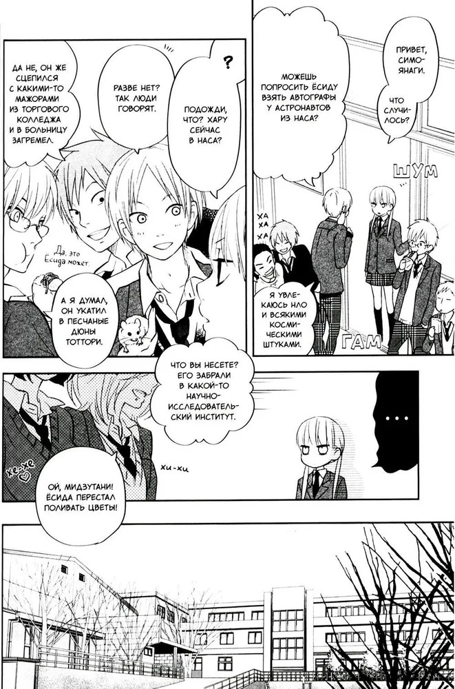Серия: Чудовище за соседней партой Прежде Сидзуку казалось, что они с Хару похожи и он способен понять ее как никто другой, но она все чаще замечает, что это совсем не так. На праздничном приеме брата Хару Юдзана чаша ее терпения переполняется — Сидзуку выходит из себя. После ссоры Хару перестает появляться в школе... Смогут ли они когда-нибудь понять друг друга? Даже если Хару искренне захочет выяснить, что на душе у Сидзуку, разве можно просто взять и признаться: «У тебя все есть, Хару, и я тебе завидую»? |