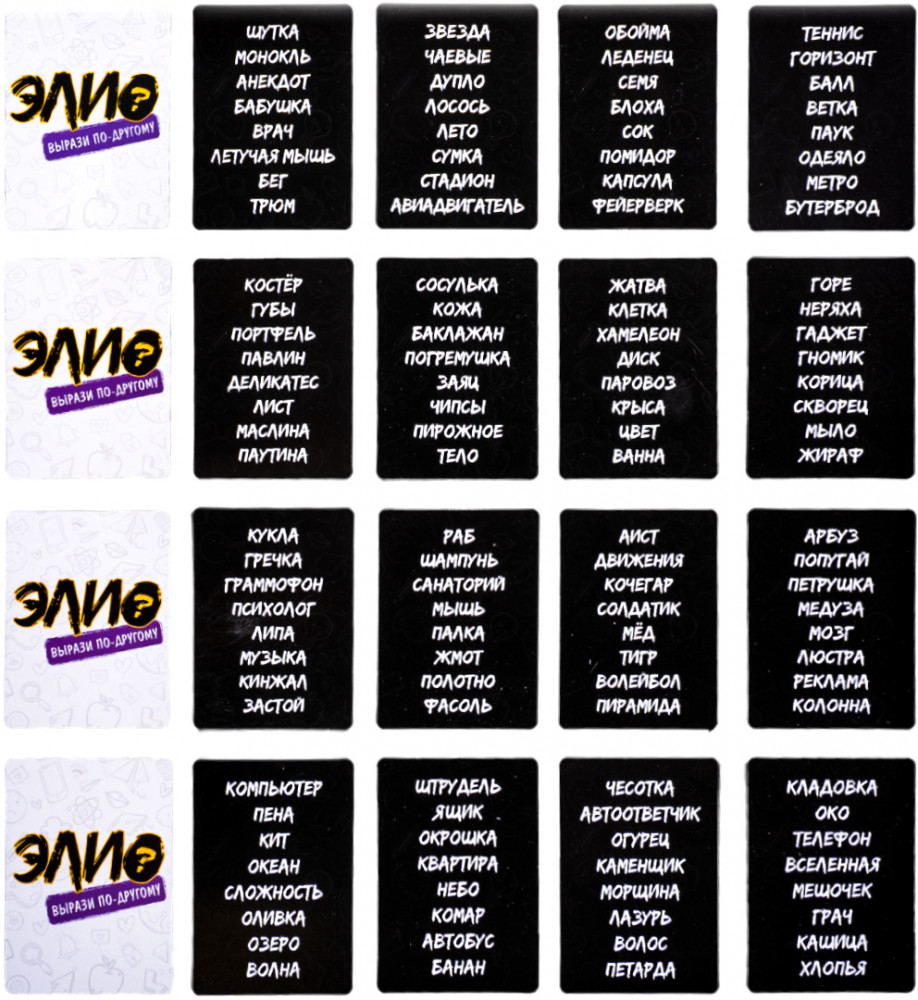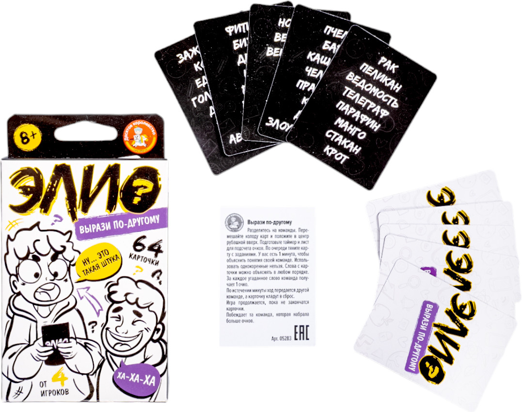 Настольная игра для детей «Элио. Вырази по-другому» — это веселая игра для большой компании от 4 человек. Настольная игра для детей «Элио. Вырази по-другому» развивает логическое мышление, внимательность и словарный запас. |