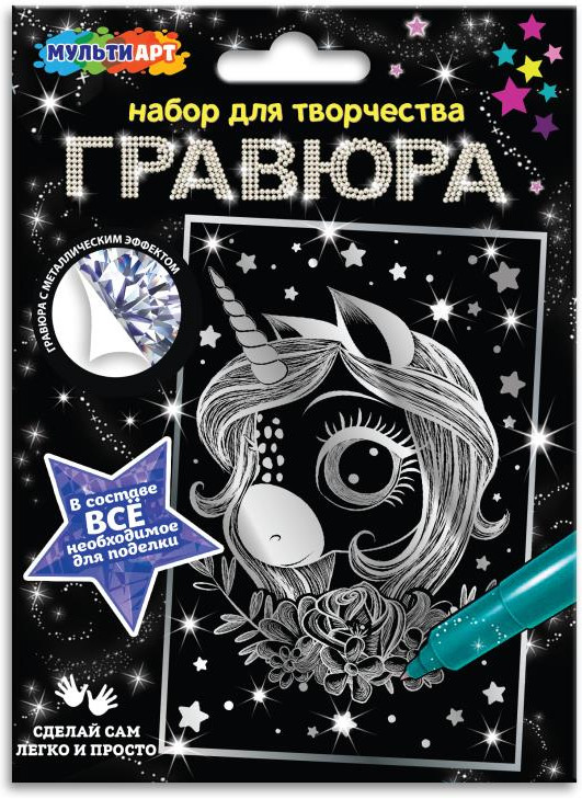 Набор для творчества — гравюра «Единорожка» — отличный подарок для ребёнка, который будет способствовать развитию его творческих способностей:
