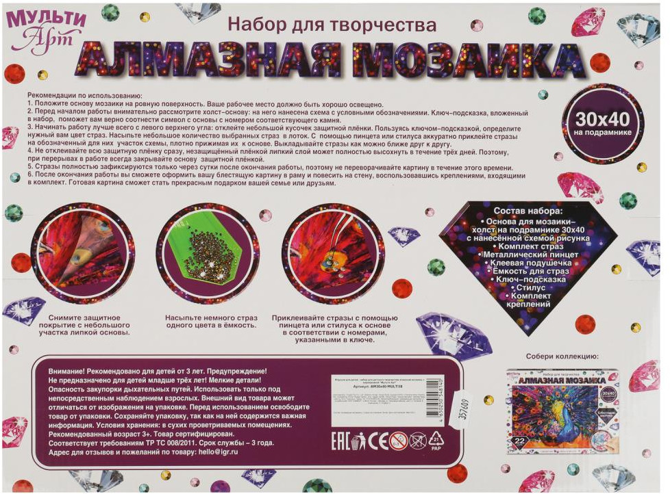 Multi Art Мозаика алмазная «Павлин»В данный момент этот товар отсутствует в продаже. Возможно, у нас найдется аналогичный или похожий товар здесь. Набор для детского творчества — алмазная мозаика «Павлин» ТМ «Мульти Арт» — отличный подарок для ребёнка, который будет способствовать развитию его творческих способностей. При помощи этого набора маленький художник сможет создать красивую картинку-мозаику, декорированную сверкающими стразами. Яркую блестящую поделку можно подарить близким или использовать для украшения комнаты. Творческие занятия с алмазной мозаикой ТМ «Мульти Арт» обладают успокаивающим действием, а также развивают: творческое мышление, цветовое восприятие, усидчивость, внимание, аккуратность. |