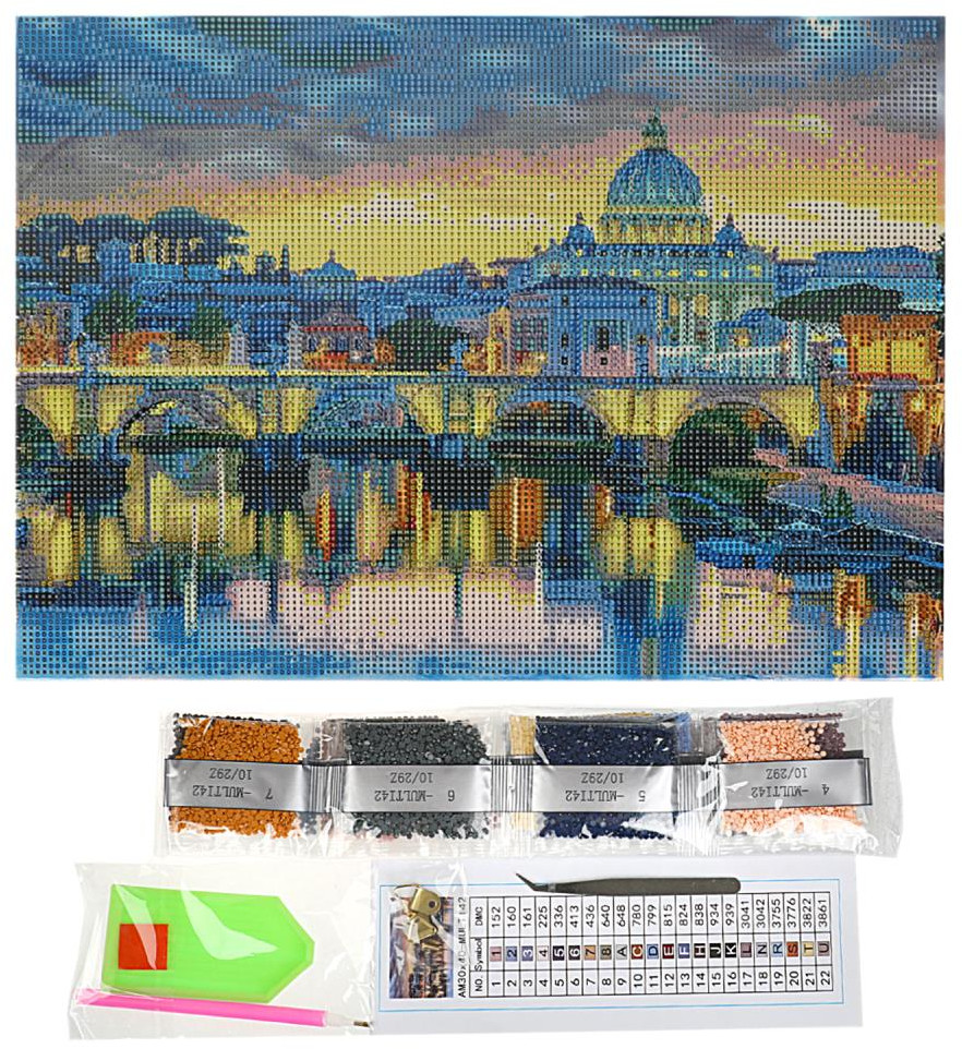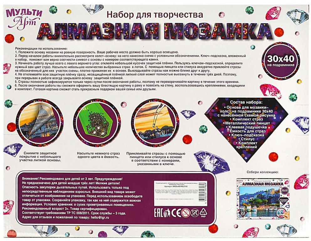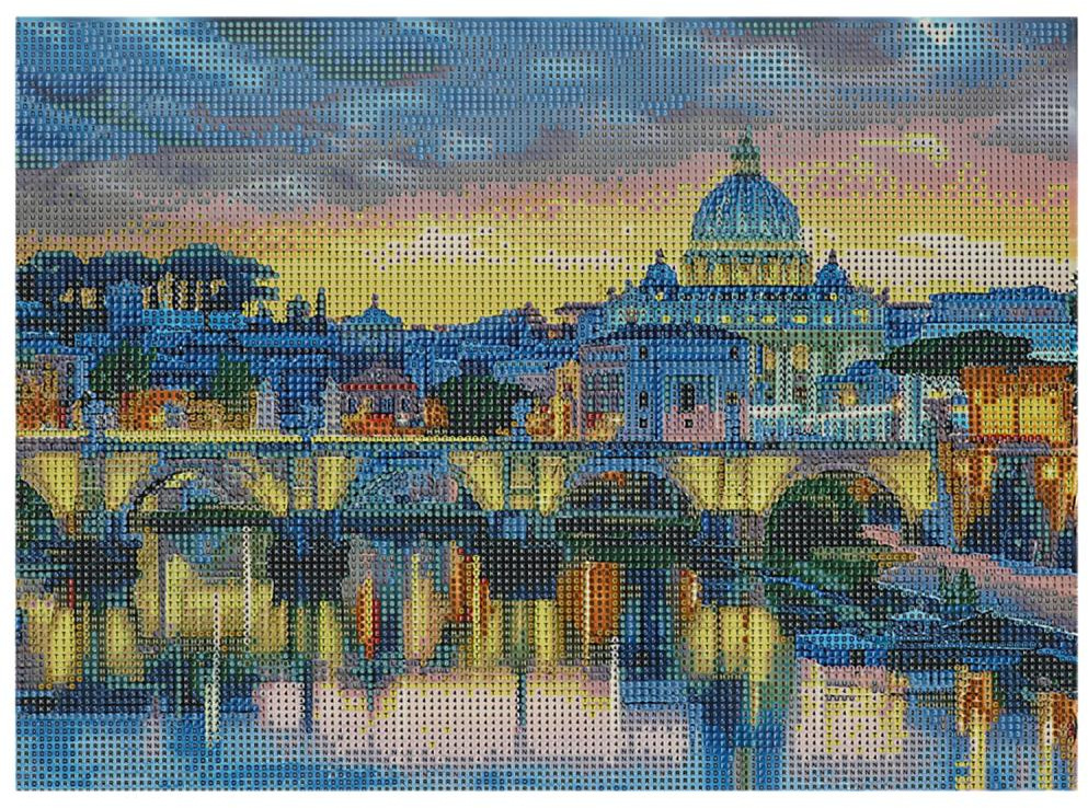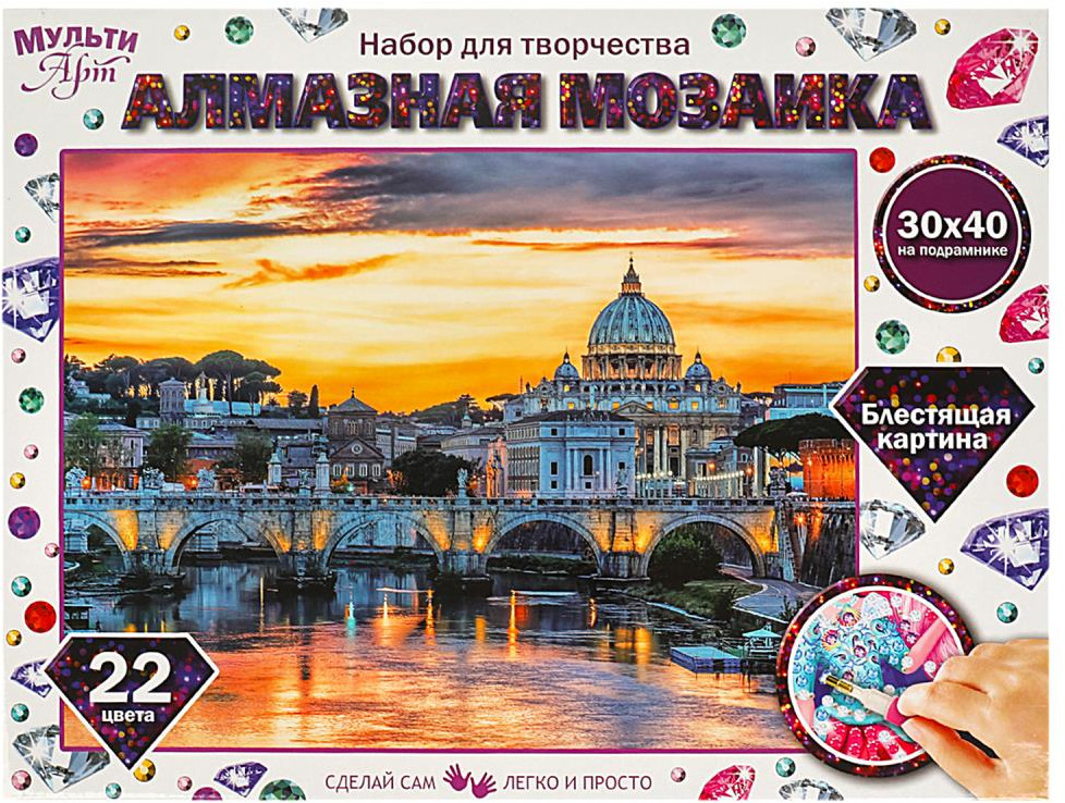 Набор для детского творчества — алмазная мозаика «Рим» ТМ «Мульти Арт» — отличный подарок для ребёнка, который будет способствовать развитию его творческих способностей. При помощи этого набора маленький художник сможет создать красивую картинку-мозаику, декорированную сверкающими стразами. Яркую блестящую поделку можно подарить близким или использовать для украшения комнаты. Творческие занятия с алмазной мозаикой ТМ «Мульти Арт» обладают успокаивающим действием, а также развивают: творческое мышление, цветовое восприятие, усидчивость, внимание, аккуратность. |