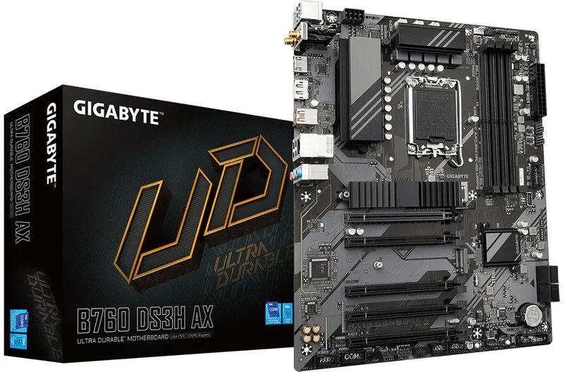 Материнская плата GIGABYTE B760 DS3H AX выделяется мощными характеристиками, благодаря которым позволяет создать производительную аппаратную платформу для разных потребностей. Она оснащена 4 слотами под установку оперативной памяти стандарта DDR5. Для размещения графических адаптеров предлагаются 5 слотов расширения PCI-E x16. Под накопители SSD/HDD есть 2 разъема M.2 и 4 порта SATA.