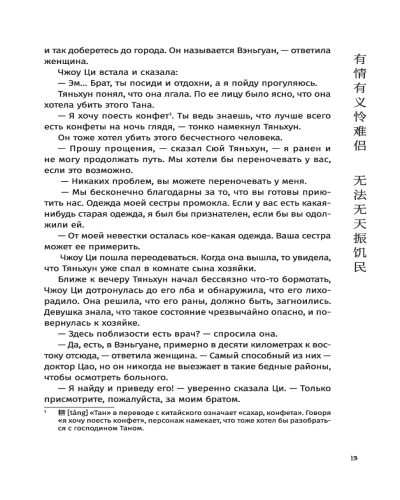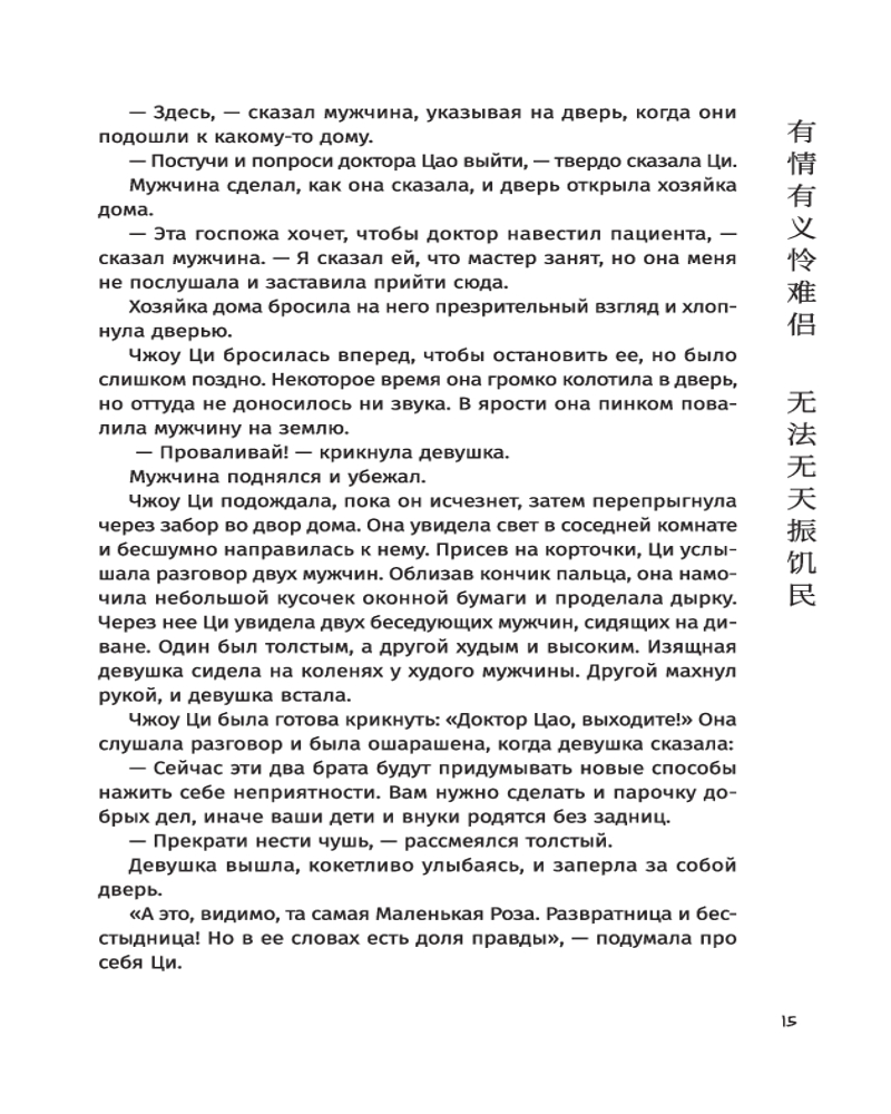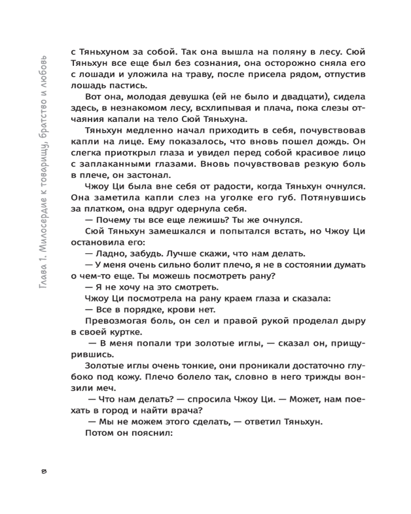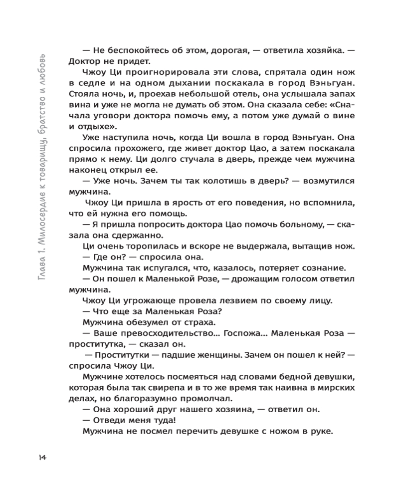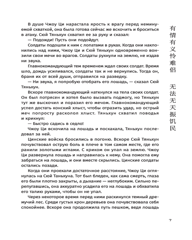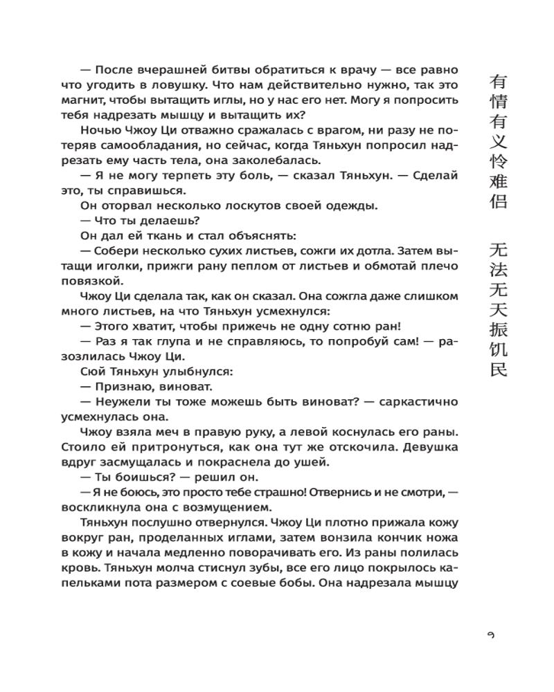 Автор искусно переплетает истории вымышленных и реальных исторических персонажей (император Цяньлун, военачальник Чжаохуэй, «душистая наложница» Сянфей — прототип принцессы Касили), заставляя читателей сопереживать героям и неотрывно следить за развитием сюжета. Вечная борьба добра и зла, безупречное кунг-фу, затерянный город в пустыне, тайна происхождения императора и отважные действия ордена Красного цветка, любовь и месть — лишь часть того, что вы найдете в романе «Книга и меч». |