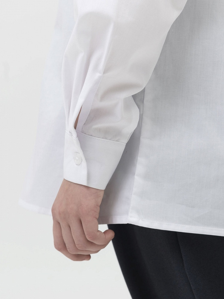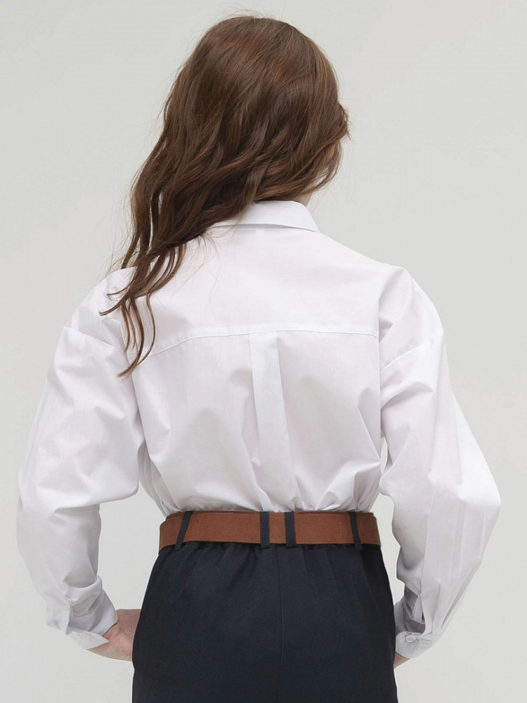 Школьная рубашка для девочки оверсайз. Ткань отлично держит форму, легко гладится и мало мнётся. Подойдёт для любой фигуры. Свободный прямой силуэт позволит быть собой и активничать не только на уроках, но и на переменах.