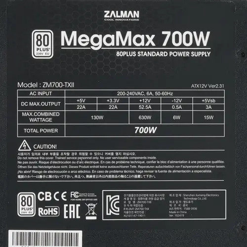 Zalman Блок питания MegaMax 700W ZM700-TXII(V2) Standard+950