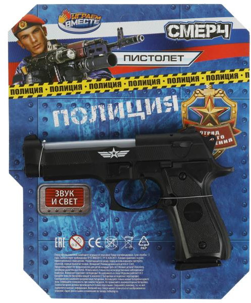 Пистолет «Полиция» ТМ «Играем вместе» станет отличным подарком для юных защитников правопорядка: |