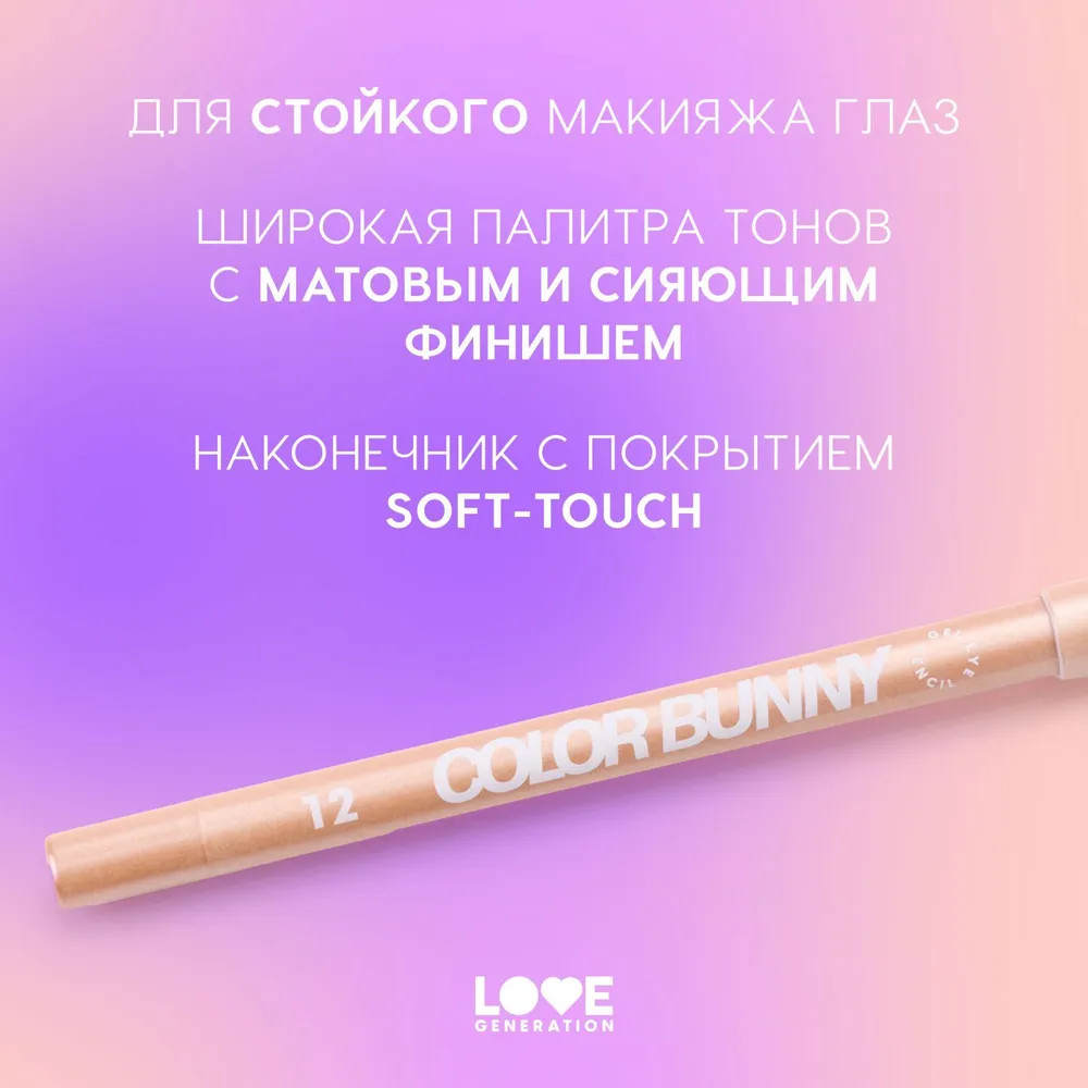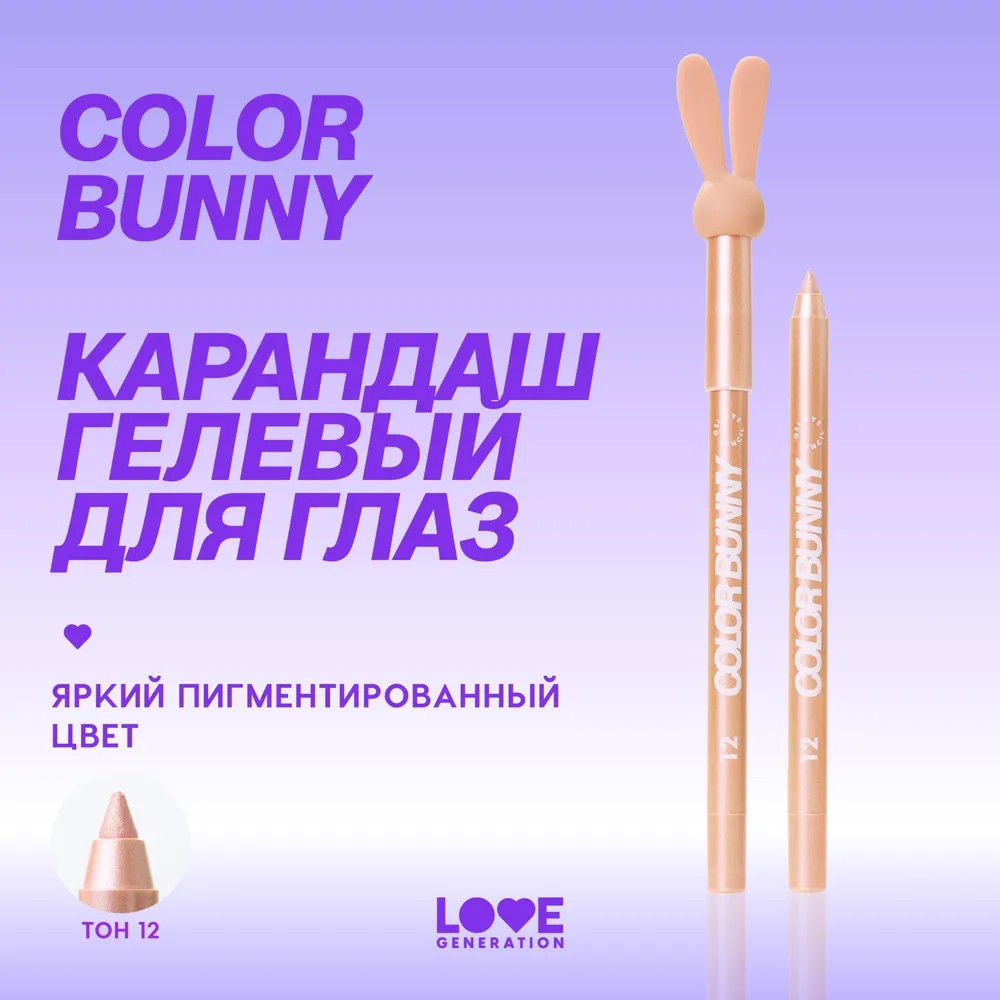 Love Generation Карандаш для глаз гелевый «Color Bunny», оттенок 12 She розово-золотой