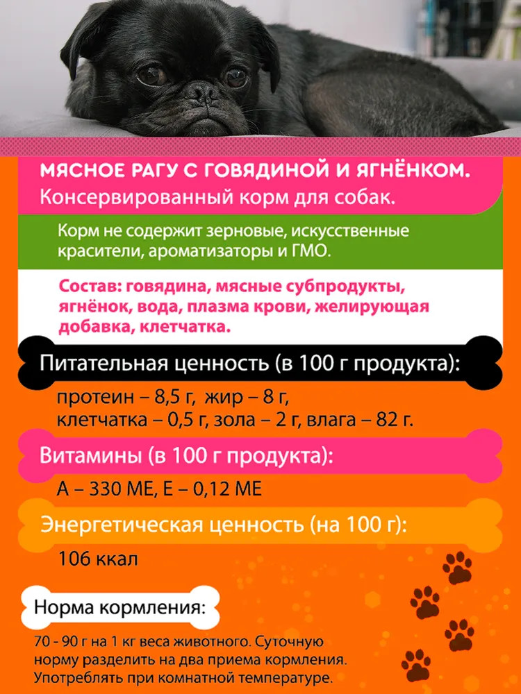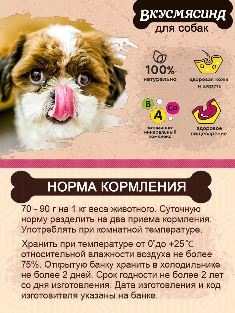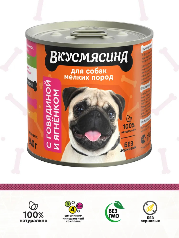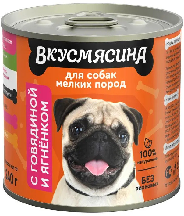 Вкусмясина Корм консервированный для собак мелких пород с говядиной и ягненком