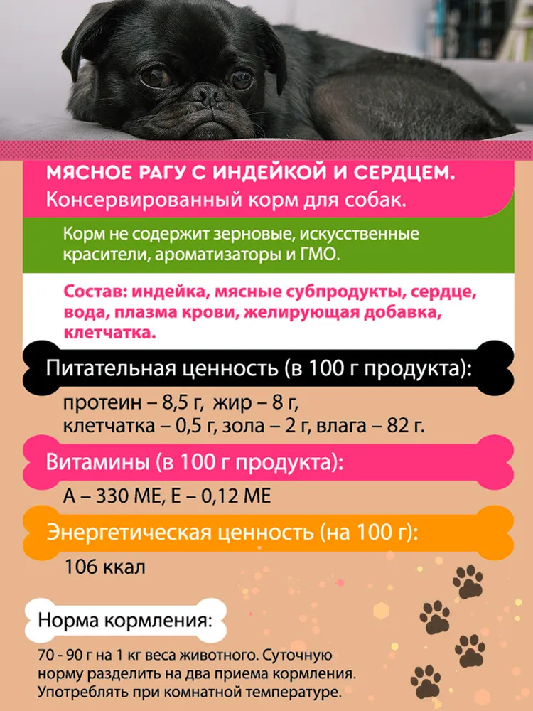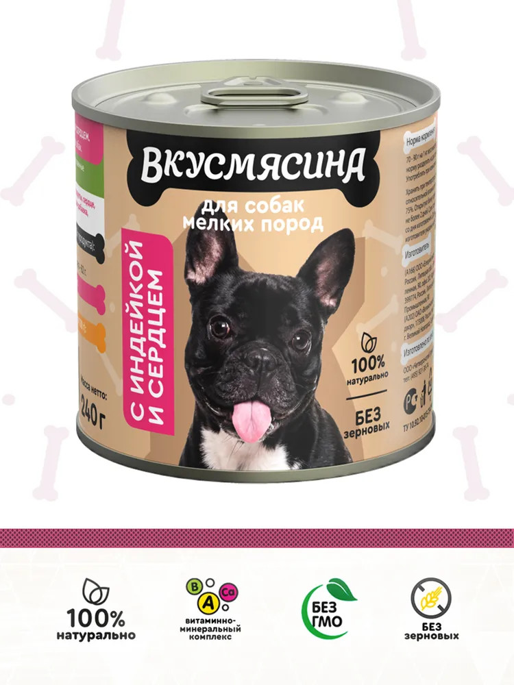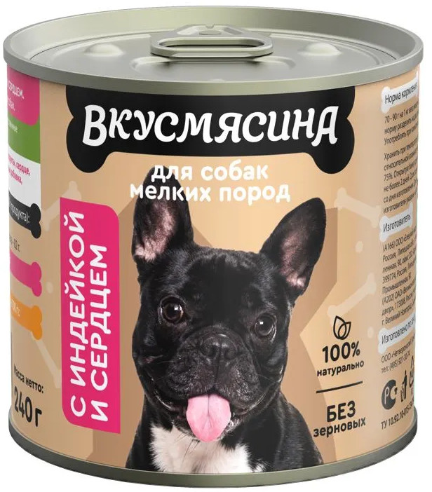 Вкусмясина Корм консервированный для собак мелких пород с индейкой и сердцем