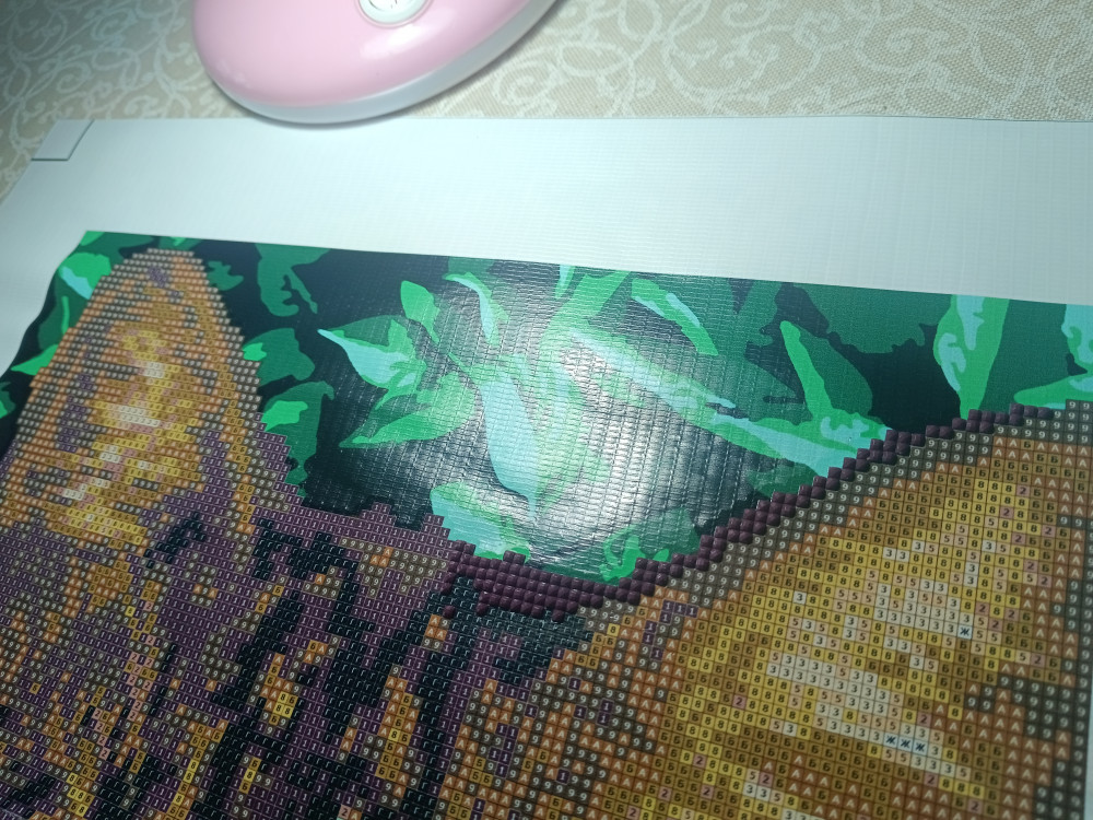 Полотно тонкое и некачественное, клей с запахом химозы, через 20 мин работы начали слезиться и чесаться глаза. Стразы разного размера и с браком. Картина с частичным заполнением но на рисунку просматривается рельеф материала, клей выходит за рамки рисунка. Качество ужасное, жаль потраченного времени и денег.