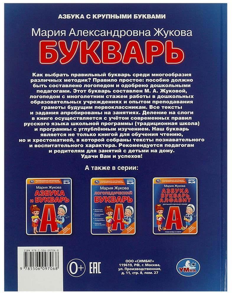 💳 Оплатить за товар можно при получении 🇰🇿 Есть бесплатная доставка по Казахстану от 1 дня 🎁 Копите бонусы с каждой покупки Серия: Букварь Книга для чтения «М. А. Жукова. Букварь» непременно понравится вашему ребёнку. Надёжная методика педагога-логопеда Марии Александровны Жуковой с многолетним летним стажем работы в дошкольных учреждениях позволит в увлекательной форме эффективно обучить ребёнка чтению. Эта яркая книга расширит кругозор и словарный запас малыша. |