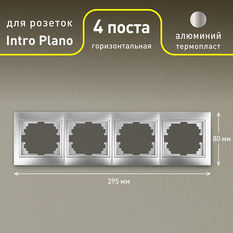 Intro Рамка для розеток и выключателей горизонтальная на четыре поста