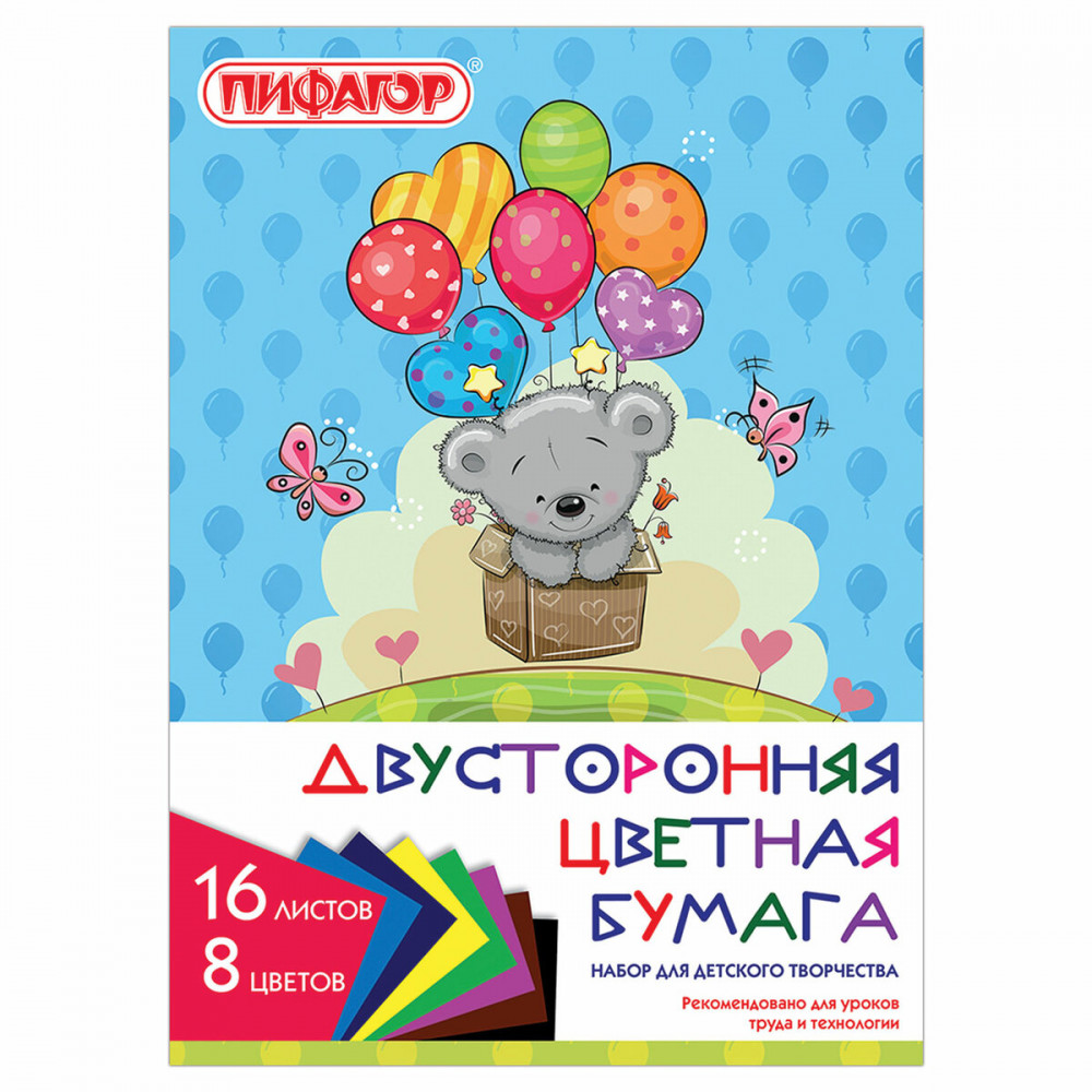 Цветная бумага ПИФАГОР, состоящая из ярких и насыщенных цветов, позволит создать прекрасную аппликацию или поделку. Рекомендована для уроков труда и технологии которые способствуют развитию моторики, фантазии и пространственного мышления.