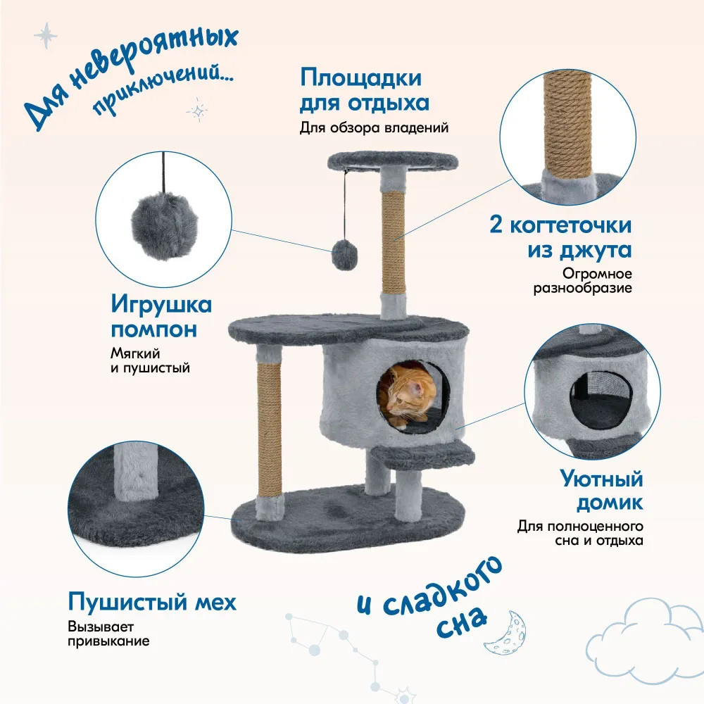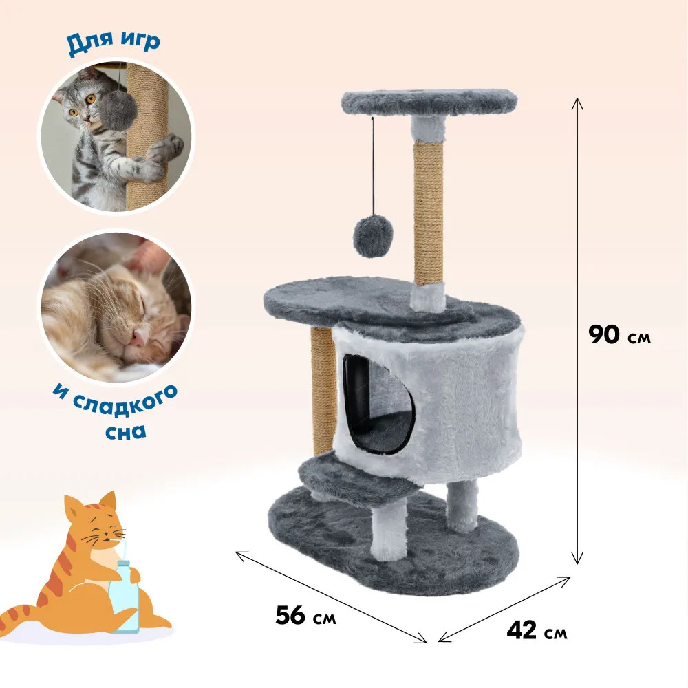 💳 Оплатить за товар можно при получении 🇰🇿 Есть бесплатная доставка по Казахстану от 1 дня 🎁 Копите бонусы с каждой покупки Идеальный игровой дом для ваших кошек, где они могут свободно прыгать лазать и заниматься спортом. Комплекс изготовлен из высококачественного ДСП, обитого мягким игрушечным мехом, чтобы держать ваших питомцев в тепле и уюте, столбики-когтеточки, обмотанные натуральной джутовой верёвкой, уберегут вашу мебель от острых когтей, есть уютное и удобное место для сна. Поставляется в разобранном виде в компактной упаковке с подробной пошаговой инструкцией. |