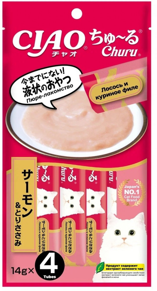 Inaba Пюре для кошек «Лосось и куриное филе»