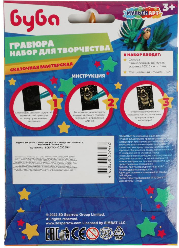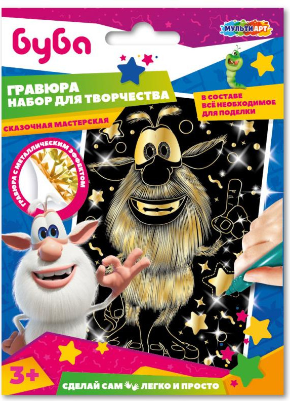 💳 Оплатить за товар можно при получении 🇰🇿 Есть бесплатная доставка по Казахстану от 1 дня 🎁 Копите бонусы с каждой покупки Серия: Буба Набор для творчества «Гравюра. Буба» ТМ «Мульти Арт» — отличный подарок для ребёнка, который будет способствовать развитию его творческих способностей. С помощью данного набора маленький поклонник мультсериала про весёлого домового сможет создать эффектную картину с изображением любимых героев. Контур рисунка уже нанесён на основу чёрного цвета, остаётся только процарапать изображение специальным штихелем. Готовую поделку можно подарить близким или использовать для украшения интерьера. Размер основы: 10 × 15 см. |