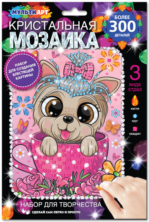 Набор для творчества — кристальная мозаика «Собачка» ТМ «Мульти Арт» — отличный подарок для ребёнка, который будет способствовать развитию его творческих способностей.