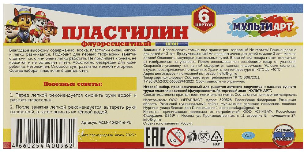 💳 Оплатить за товар можно при получении 🇰🇿 Есть бесплатная доставка по Казахстану 🎁 Копите бонусы с каждой покупки Серия: Щенячий патруль Пластилин флуоресцентный ТМ «Мульти Арт» — отличный подарок для развития творческих способностей ребёнка: |