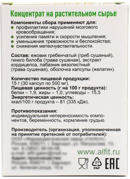 | Алфит Концентрат на растительном сырье «Ежовик с гинкго билоба»+69 (бонусов)