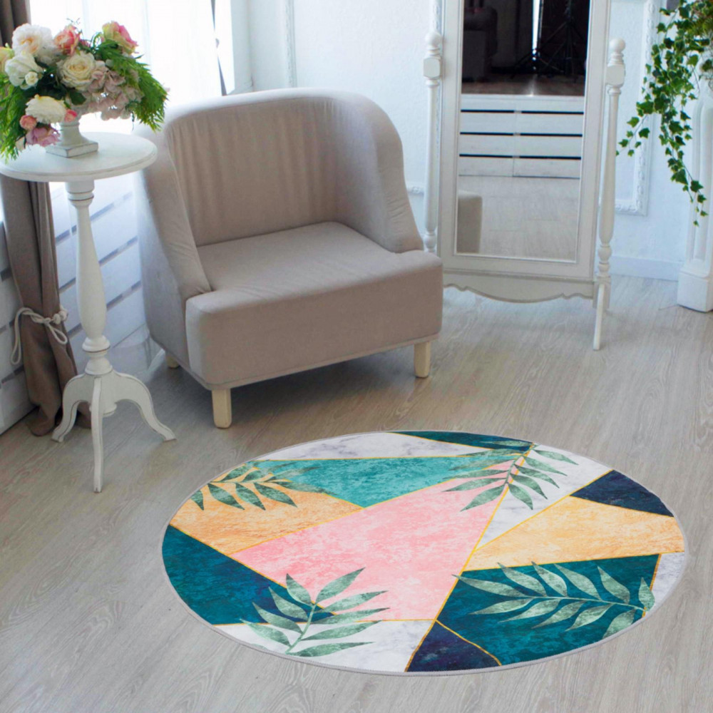 Ковёр поможет украсить детскую комнату, игровую, подойдет на кухню, в зал, в прихожую, коридор, в спальню и в гостиную. Он выполнен из качественного и прочного материала. Ковёр круглой формы с антискользящим покрытием, высота ворса — 3 мм.
