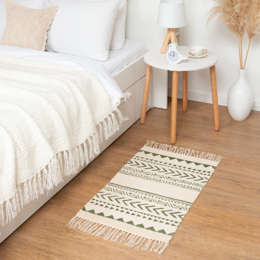 Ковёр поможет украсить детскую комнату, игровую, подойдет на кухню, в зал, в прихожую, коридор, в спальню и в гостиную. Благодаря интересному дизайну в этно-стиле такой декоративный акцент добавит ощущение уюта и оживит интерьер, поможет разделить пространство на зоны и легко объединить различные стили. Изделие из 100% хлопка отличается привлекательным внешним видом и прекрасными эксплуатационными характеристиками. Материал является экологичным, прочным, не вызывает аллергию, не электризуется и сохраняет первоначальные качества долгие годы. Ковер будет отлично смотреться на полу в гостиной, спальне, кабинете и любых других комнатах.