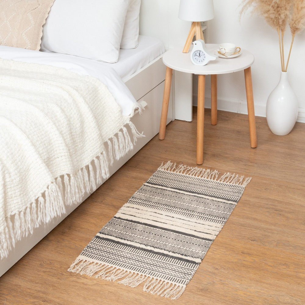 Ковёр поможет украсить детскую комнату, игровую, подойдет на кухню, в зал, в прихожую, коридор, в спальню и в гостиную. Благодаря интересному дизайну в этно-стиле такой декоративный акцент добавит ощущение уюта и оживит интерьер, поможет разделить пространство на зоны и легко объединить различные стили. Изделие из 100% хлопка отличается привлекательным внешним видом и прекрасными эксплуатационными характеристиками. Материал является экологичным, прочным, не вызывает аллергию, не электризуется и сохраняет первоначальные качества долгие годы. Ковер будет отлично смотреться на полу в гостиной, спальне, кабинете и любых других комнатах.
