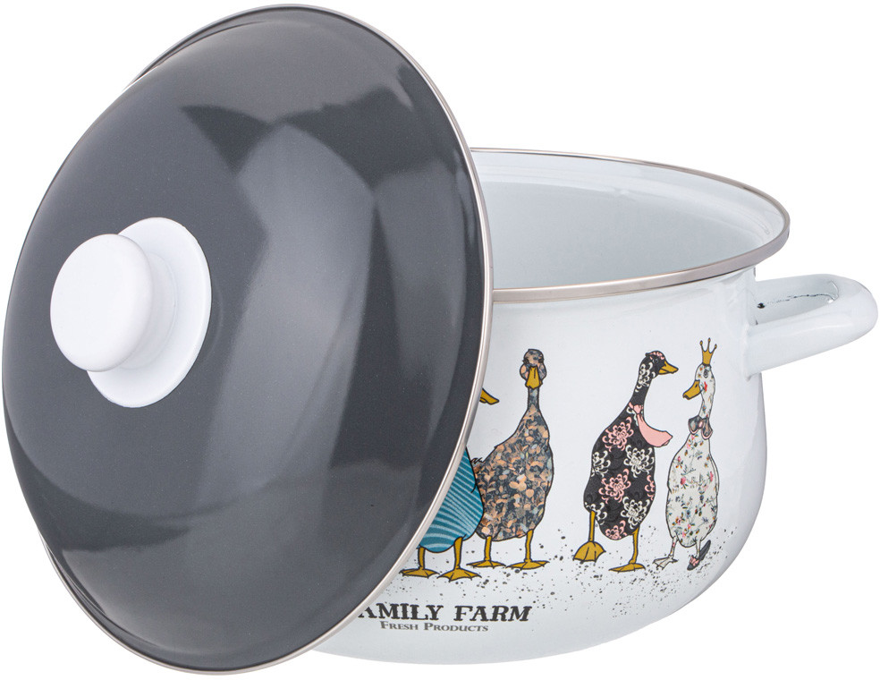 Agness Кастрюля эмалированная с крышкой «Family farm»