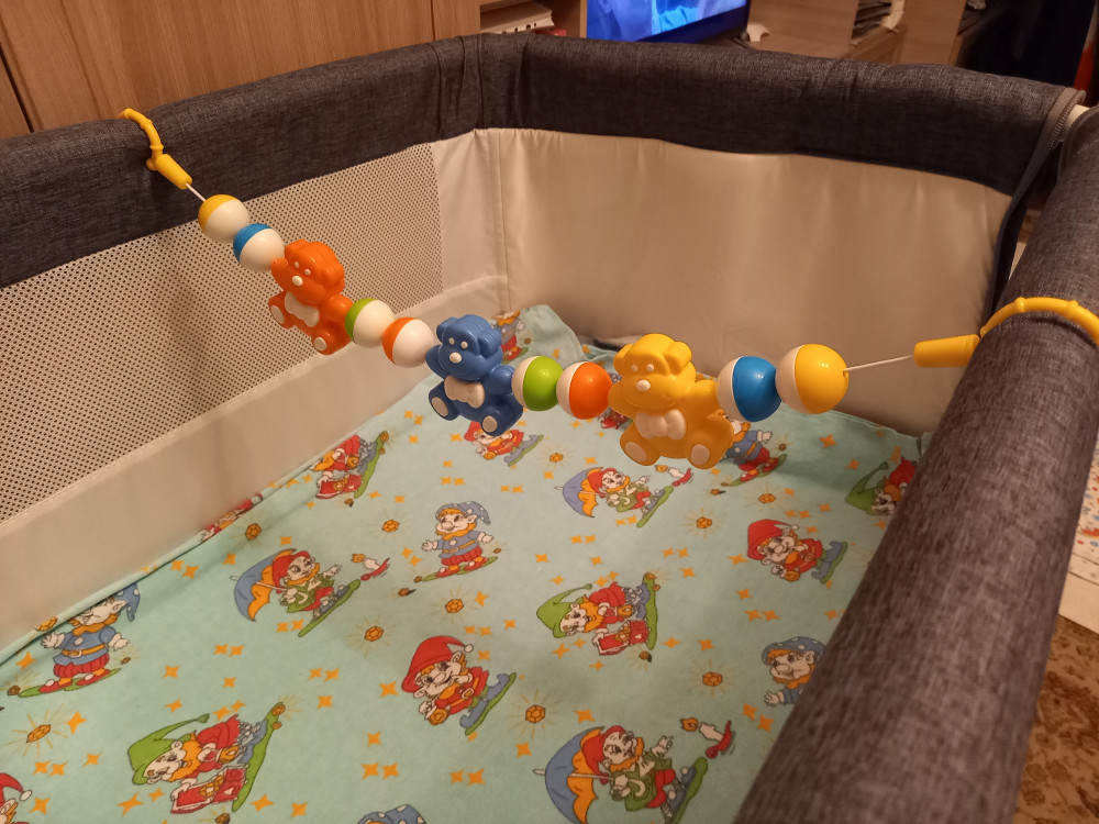 Покупкой довольны, ребёнок активно играет с погремушкой-подвеской. Яркий цвет, качество-на высоте, все выполнено аккуратно, ни одной шероховатости, все прекрасно обработано. Повесили на люльку Ining Baby, держится хорошо.