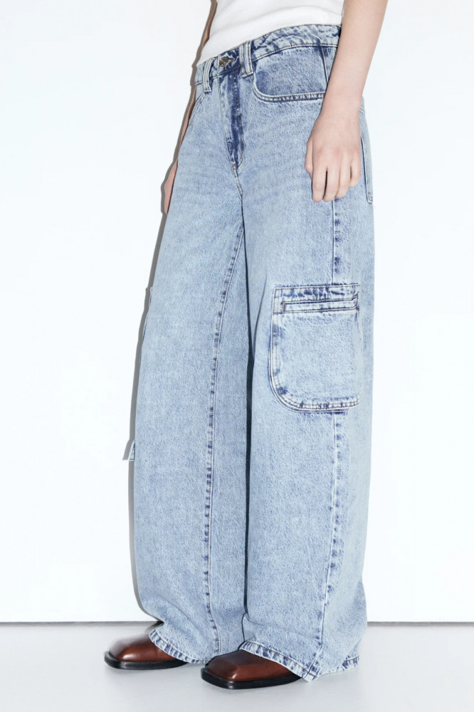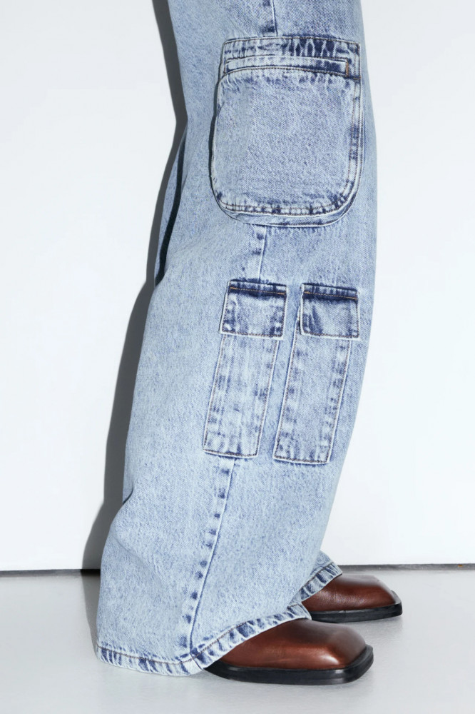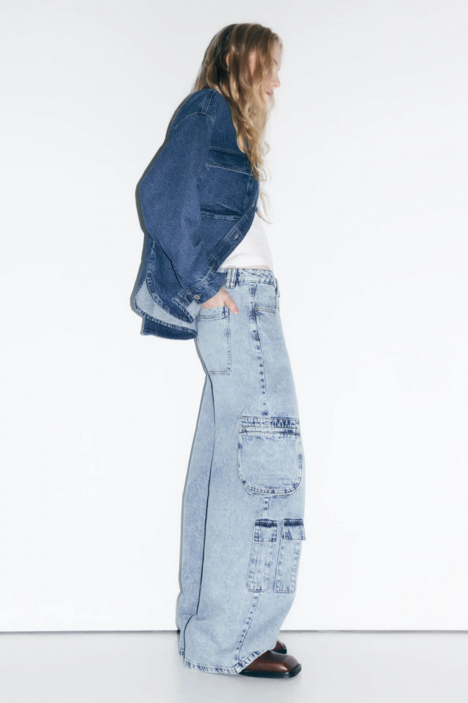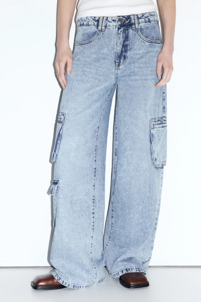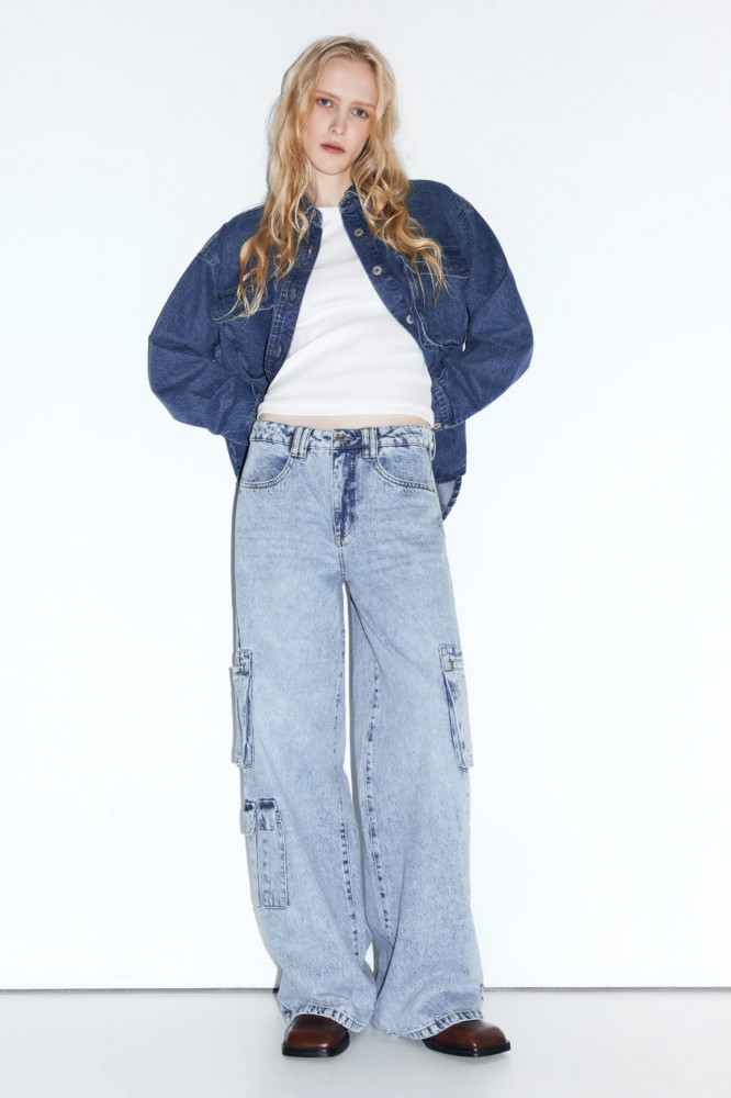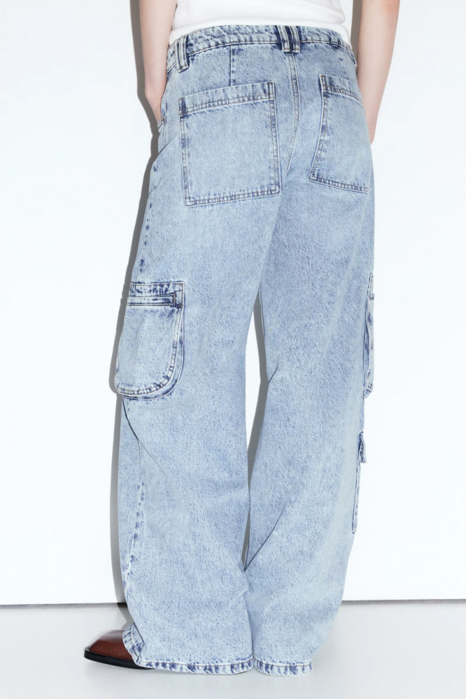 Джинсы широкие с карманами карго. Широкие женские джинсы-трубы из плотного 100% хлопкового денима. Стильные и удобные широкие джинсы cargo fit из новой коллекции для расслабленных повседневных и уличных луков с твоими любимыми футболками, свитерами или рубашками. Создавай самые удобные и стильные аутфиты в школу, универ или офис на каждый день с этими трендовыми вареными джинсами-трубами с карманами карго. Сочетай джинсы со свободной джинсовой рубашкой и создавай трендовые денимные тотал-луки.