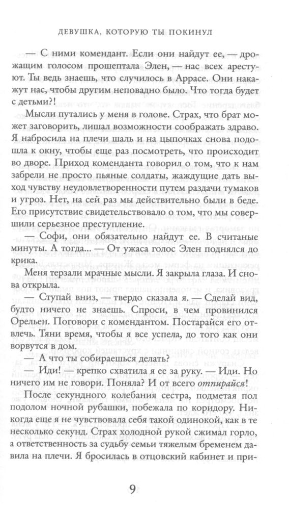 "Девушка, которую ты покинул" просто супер! Два совершенно разных времени тесно связаны между собой, война и мирное время. И в центре картина, вокруг которой все и завязано. Читаешь и переживаешь, сначала за героиню во время оккупации, потом за героиню-хозяйку картины. Время, потраченное на чтение книги, того стоит)))