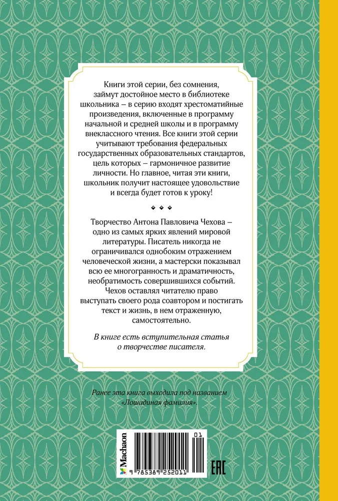 💳 Оплатить за товар можно при получении 🇰🇿 Есть бесплатная доставка по Казахстану 🎁 Копите бонусы с каждой покупки Серия: Чтение-лучшее учение Творчество Антона Павловича Чехова — одно из самых ярких явлений мировой литературы. Писатель никогда не ограничивался однобоким отражением человеческой жизни, а мастерски показывал всю ее многогранность и драматичность, необратимость совершившихся событий. Чехов оставлял читателю право выступать своего рода соавтором и постигать текст и жизнь, в нем отраженную, самостоятельно. |