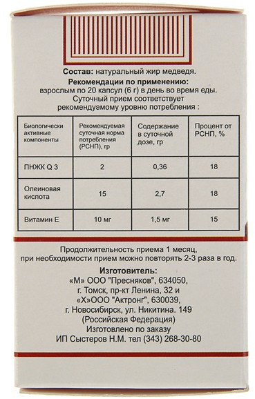 Пресняков В.В. ПБЮЛ Биологически активная добавка «Медвежий жир»-25% +78