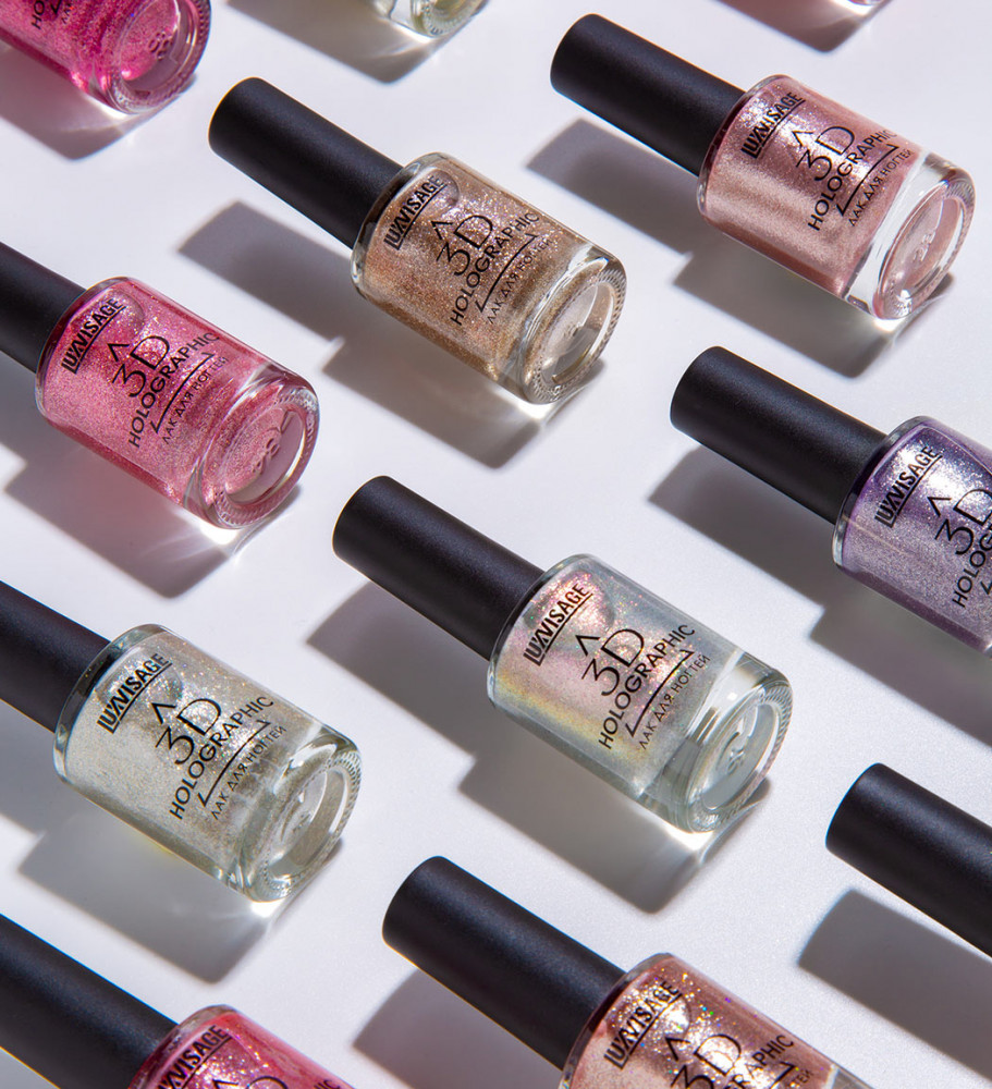 Очень красивый оттенок лака с голографическим эффектом. Не жидкий, наносится легко, кисточка плоская, не пушистая. Высыхает быстро.