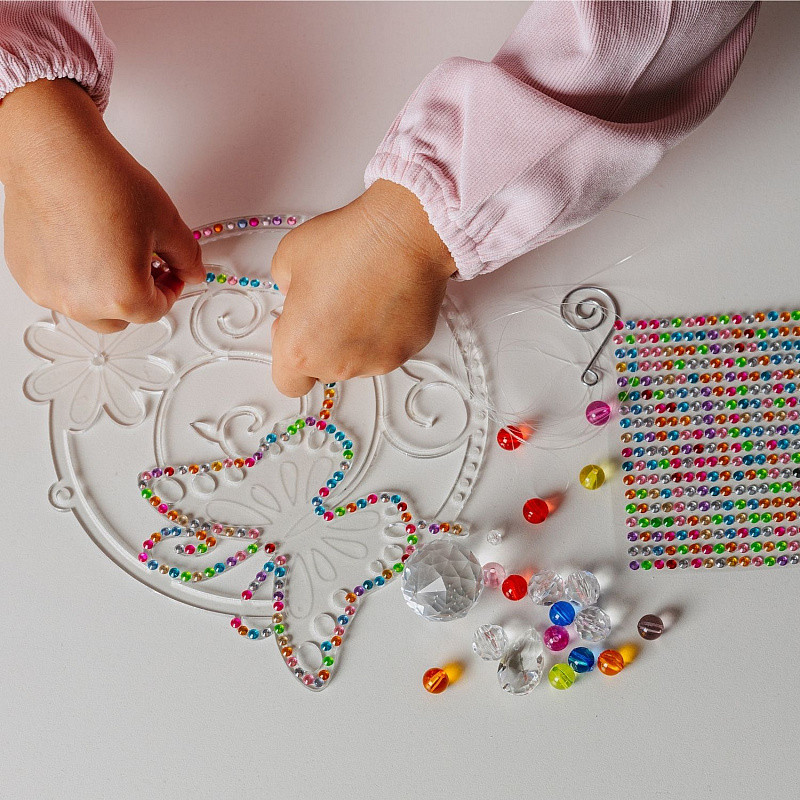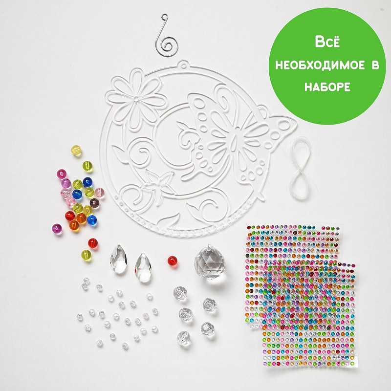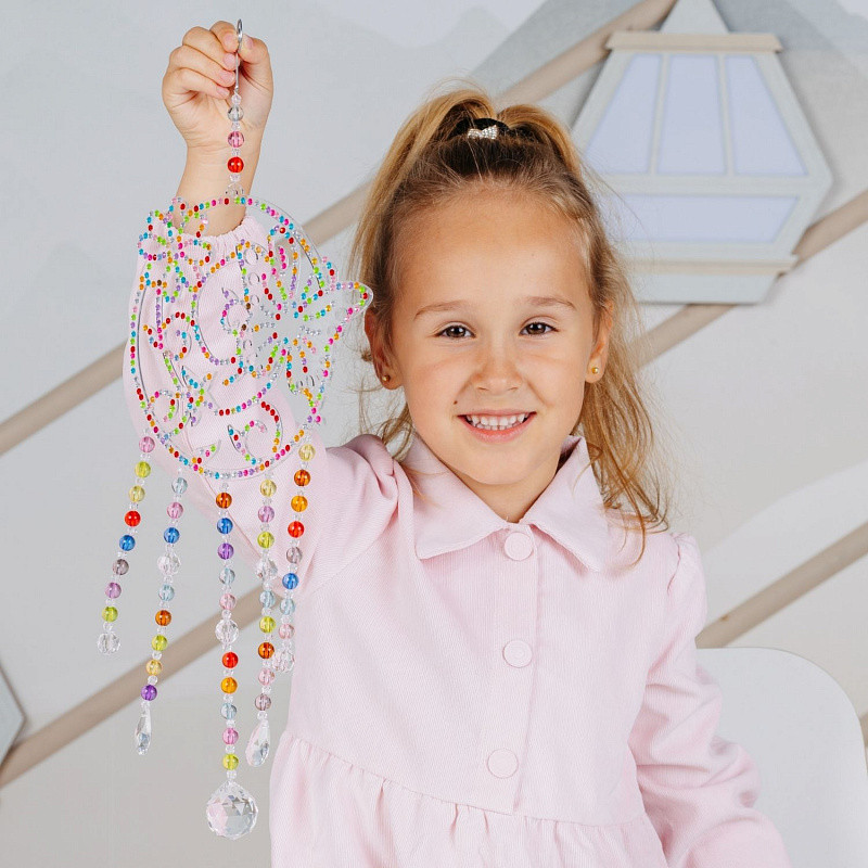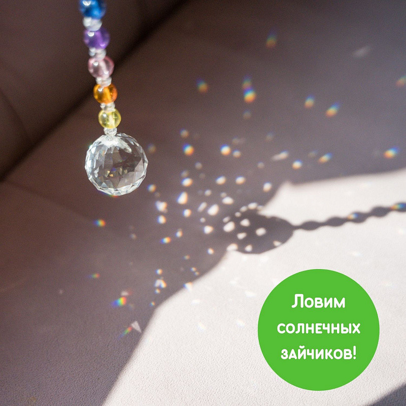 Если повесить его рядом с окном, лучи солнца попадут на бусины с гранями, и комната сразу же наполнится солнечными зайчиками! С подробной инструкцией сделать свой ловец будет совсем несложно, клей не понадобится. Основа из акрила защищена от царапин специальной плёнкой.