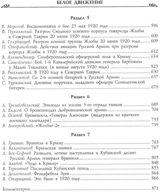 Русская Армия генерала Врангеля. Бои на Кубани и в Северной ТаврииВ данный момент этот товар отсутствует в продаже. Возможно, у нас найдется аналогичный или похожий товар здесь. Серия: Белое движение Книга представляет собой четырнадцатый том серии, посвященной Белому движению в России, и охватывает события первых месяцев истории Русской Армии после эвакуации из Новороссийска и Одессы в Крым части Вооруженных сил на Юге России (март — август 1920 г.). В книге детально представлен сложный процесс передачи командования ВСЮР от генерала А.И. Деникина к генералу П.Н. Врангелю. Подробно описаны действия нового командования по воссозданию боеспособной армии и ее духа, переходу в контрнаступление и проведению военных операций в Северной Таврии и на Кубани. Эти и последующие акции позволили белому воинству достойно завершить 3-летнюю Гражданскую войну и уйти в изгнание с гордо поднятой головой. «Слава побежденным!» — такими словами заканчивается один из фрагментов этой книги. Книга снабжена обширными и впервые публикуемыми комментариями, содержащими несколько сот неизвестных биографических справок об авторах и героях очерков. |