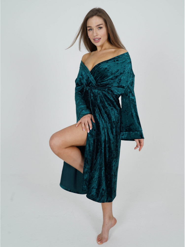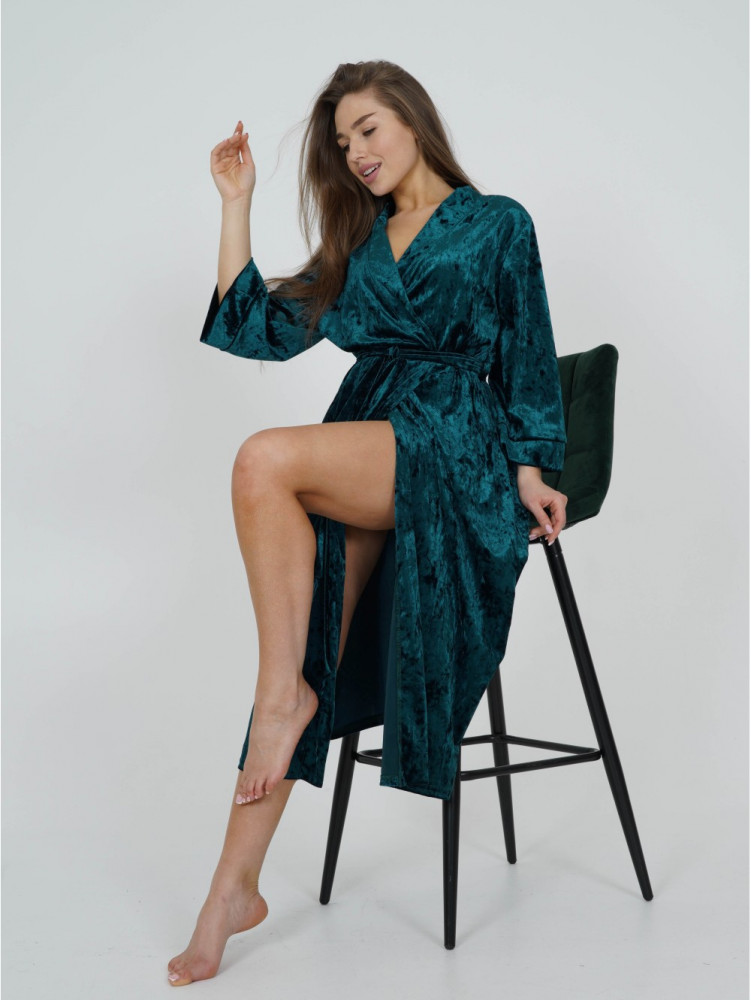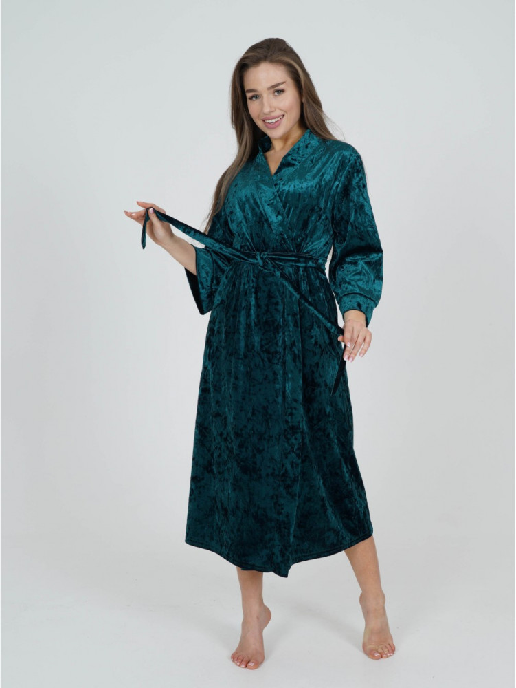 Отличный халат, цвет, взяла на размер больше, чтобы был более свободный, для меня так комфортнее.