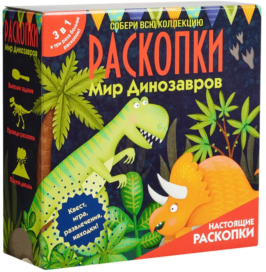В данный момент этот товар отсутствует в продаже. Возможно, у нас найдется аналогичный или похожий товар здесь. Серия: Раскопки Как только ребёнок откроет буклет с квестом из этого археологического набора, он сразу же отправится в увлекательное приключение по миру динозавров. Юному палеонтологу предстоит заниматься поиском скелетов динозавров в брусках из гипса. Где же спрятаны очень редкие светящиеся динозавры? Это ещё предстоит узнать!