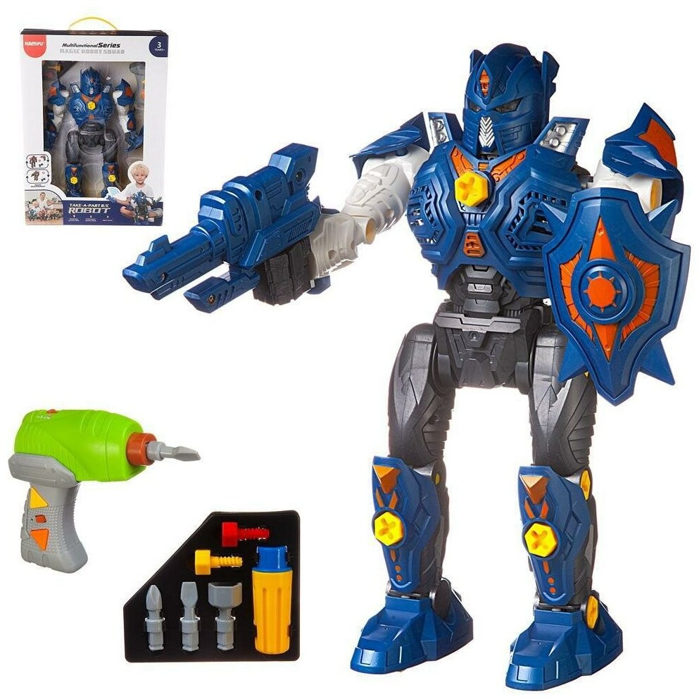 Junfa Toys Робот на радиоуправлении с пультом управленияВ данный момент этот товар отсутствует в продаже. Возможно, у нас найдется аналогичный или похожий товар здесь. Этот большой, синий робот сразу привлекает к себе внимание. Его движением можно управлять с помощью пульта дистанционного управления. Этот же пульт можно использовать в качестве электрического шуруповёрта, чтобы разбирать и снова собирать робота. |