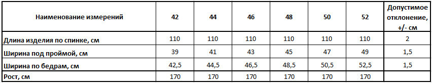 Размер производителя