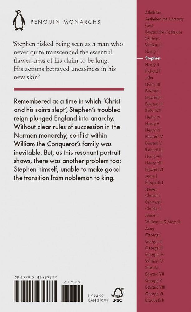 Stephen. The Reign of AnarchyВ данный момент этот товар отсутствует в продаже. Возможно, у нас найдется аналогичный или похожий товар здесь. Серия: Penguin monarchs Known as ’the anarchy’, the reign of Stephen (1135-1141) saw England plunged into a civil war that illuminated the fatal flaw in the powerful Norman monarchy, that without clear rules ordering succession, conflict between members of William the Conqueror’s family were inevitable. But there was another problem, too: Stephen himself. With the nobility of England and Normandy anxious about the prospect of a world without the tough love of the old king Henry I, Stephen styled himself a political panacea, promising strength without oppression. As external threats and internal resistance to his rule accumulated, it was a promise he was unable to keep. Unable to transcend his flawed claim to the throne, and to make the transition from nobleman to king, Stephen’s actions betrayed uneasiness in his role, his royal voice never quite ringing true. The resulting violence that spread throughout England was not, or not only, the work of bloodthirsty men on the make. As Watkins shows in this resonant portrait, it arose because great men struggled to navigate a new and turbulent kind of politics that arose when the king was in eclipse. |