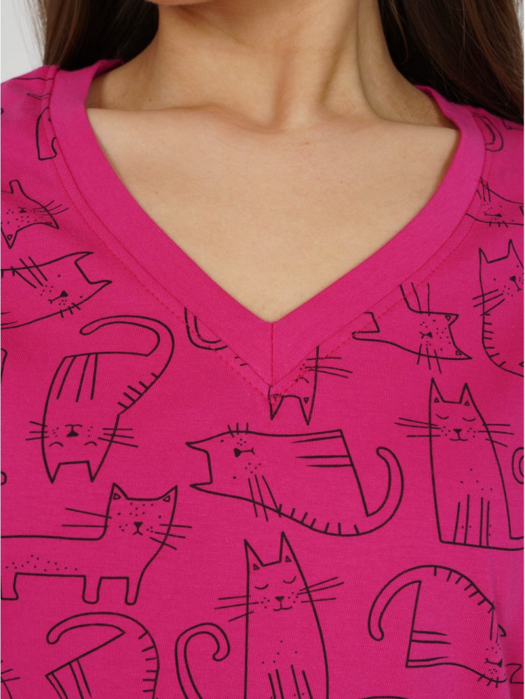 Мягкая туника женская изготовлена из хлопкового материала — кулирки пенье. Уютная и практичная — отличный повседневный вариант для домашних дел и отдыха. Мягкий, натуральный и дышащий материал не сковывает движений, модель с деликатными швами, их абсолютно не чувствуется. В ней очень комфортно в летнее время года.