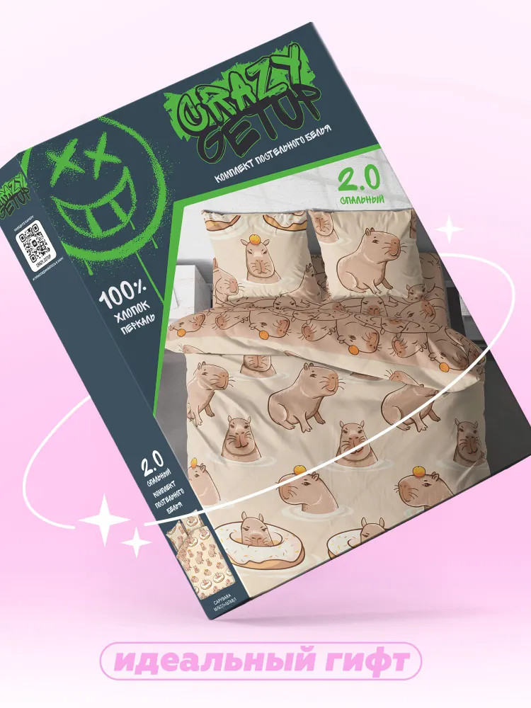 «Crazy Getup» создаёт постельное белье для таких как ты — активных, выделяющихся, на стиле. Больше никакой скуки! Только самые актуальные и популярные дизайны для тех, кто ценит стиль. Большой ассортимент позволит выбрать то, что подходит именно тебе! Постельное белье, помогает засыпать и видеть крэйзи сны. Абсолютно все наши комплекты для творческих, нестандартных личностей, которые не любят и не хотят жить в рамках. Оформляй спальню ярко! Мы создали комплект постельного белья для таких как ты, креативных и ярких. Комплект постельного белья будто сошел с эстетичных картинок Пинтереста. Кофейные оттенки комплекта «Капибара», дополнят комнату в пастельных тонах и подарят его обладателю сладкие сны.