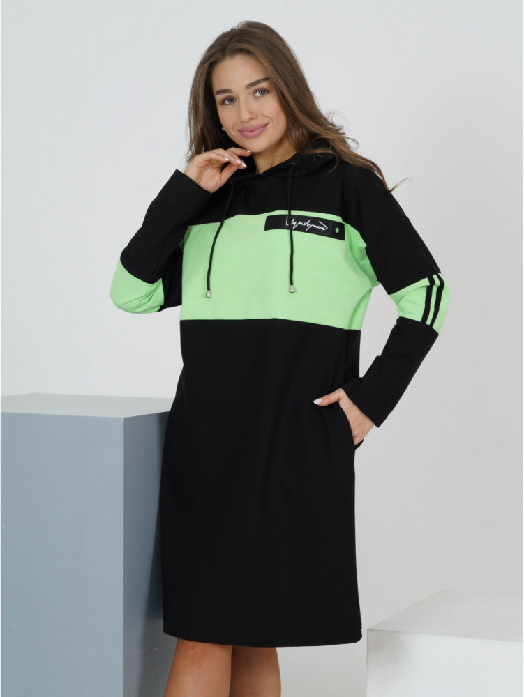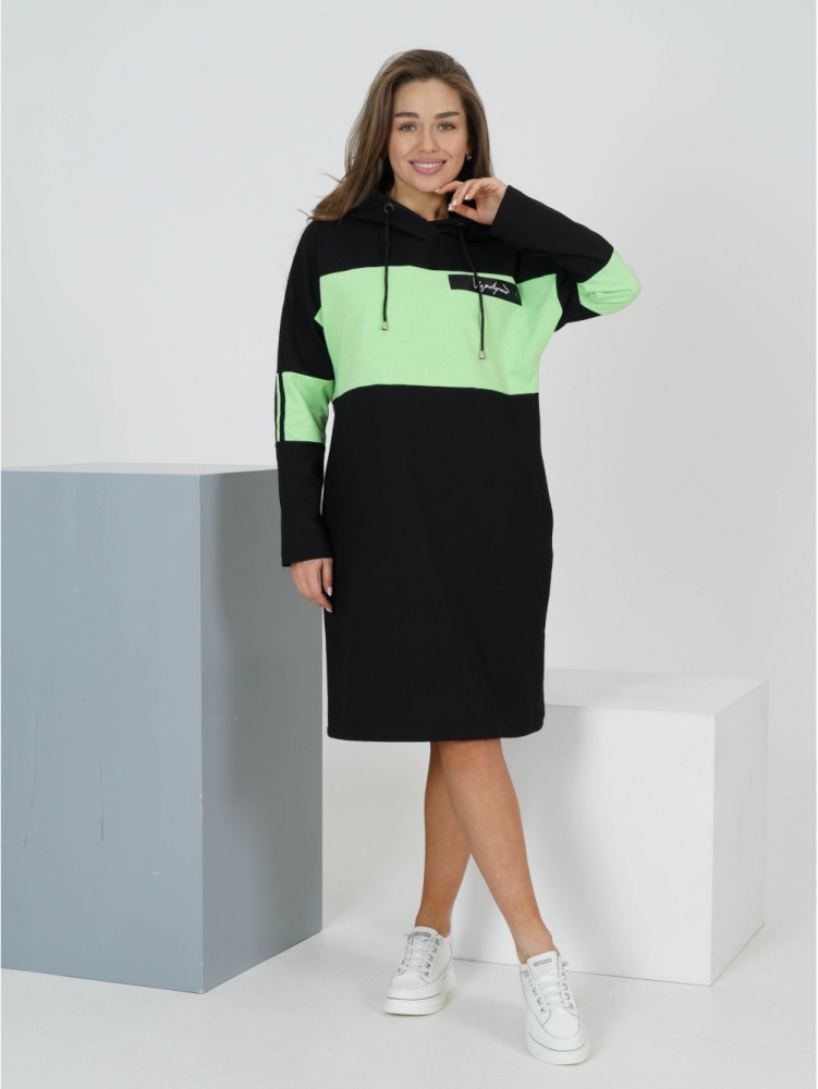 В мегаполисе хочется не только выглядеть стильно, но и чувствовать себя комфортно. Спортивное платье — идеальный вариант. Оно сочетает в себе все необходимые качества. Представляем платье «Лойс» из футера двух нитки с капюшоном. Дополняют образ стильная нашивка спереди, лампасы на рукаве и карманы. Футер — это натуральная ткань, эластичная и плотная, мягкая и приятная на ощупь. Костюм из этого трикотажа долго сохраняет форму. Это отличный вариант для прогулки, работы и вечера.