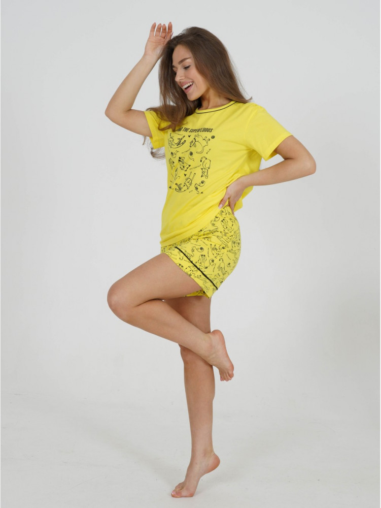 Комплект «Лекси» — это идеальное сочетание стиля, комфорта и качества, которое подойдет девушкам всех возрастов и размеров. Повседневный костюм-двойка состоит из футболки и шорт. Футболка прямого силуэта с коротким рукавом, выполнена из однотонной ткани. Вырез горловины обработан окантовкой с кантом. Удобные шорты из цветного турецкого полотна качества пенье, без карманов. Это идеальное решение для домашнего гардероба.