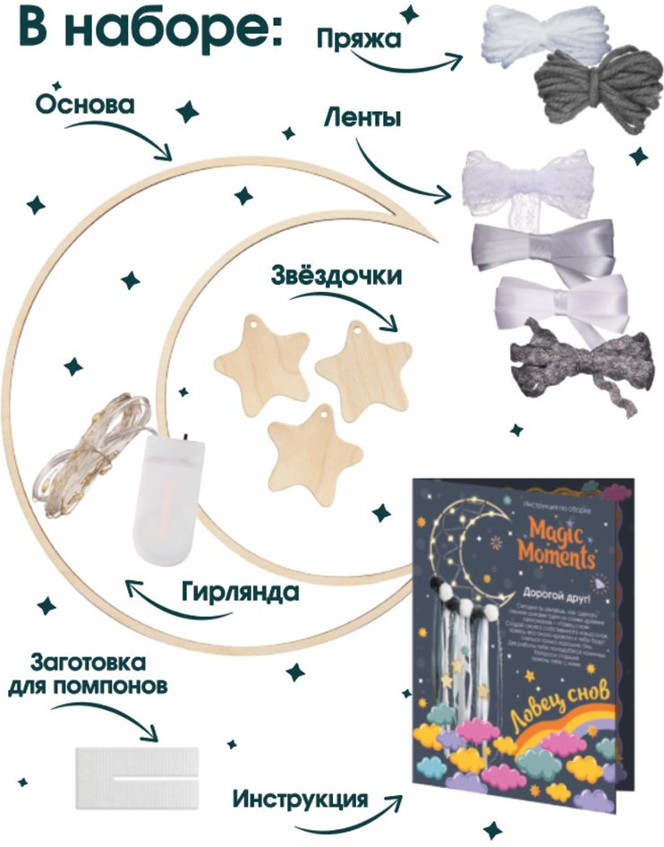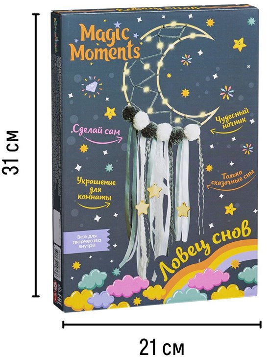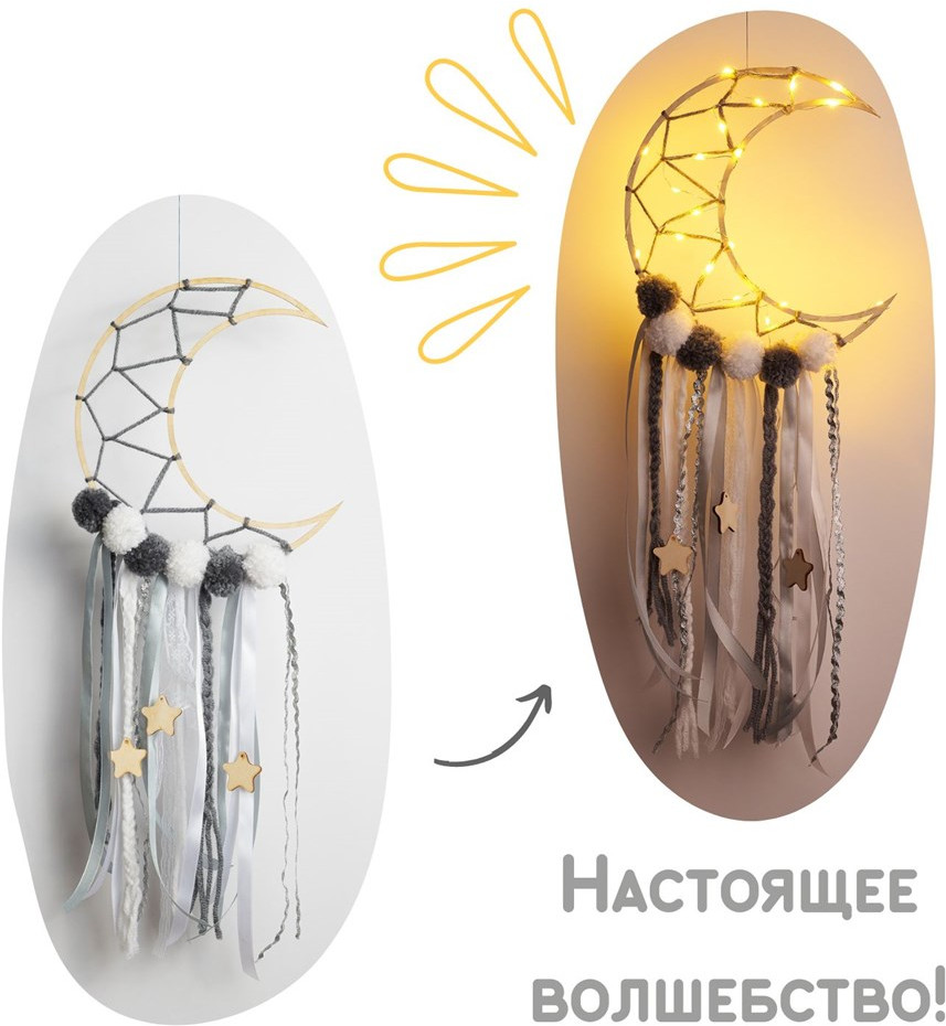Magic Moments Набор для творчества ловец снов «Месяц»В данный момент этот товар отсутствует в продаже. Возможно, у нас найдется аналогичный или похожий товар здесь. Ловцы снов ловят плохие сны в свои паутинки, а пропускают только хорошие. Затем хорошие сны спускаются по красивым ленточкам к спящему. С помощью этого набора вы сможете создать оберег древних индейцев, который не только будет охранять ваш сон, но и станет отличным украшением комнаты. Сделайте этот ловец снов в стиле сканди! Он имеет красивую форму месяца и приятные цвета. В наборе также есть красивая гирлянда с тёплым светом, которая сделает атмосферу в комнате еще уютнее! |