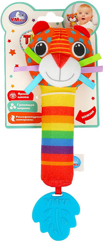 💳 Оплатить за товар можно при получении 🇰🇿 Есть бесплатная доставка по Казахстану от 1 дня 🎁 Копите бонусы с каждой покупки Текстильная игрушка-погремушка с пищалкой «Тигрёнок» тм «УМка» разработана специально для самых маленьких. Эта игрушка в виде забавного тигрёнка выполнена из гипоаллергенного разнофактурного текстиля красочной расцветки. При нажатии игрушка издаёт забавный пищащий звук, а если её потрясти — весело загремят шарики, надежно спрятанные внутри. Прорезыватель интересной формы из качественного безопасного материала пригодится малышу, когда у него будут резаться зубки. Игра с погремушкой тм «УМка» развивает: слуховое восприятие, тактильные навыки, моторику и цветовосприятие. |