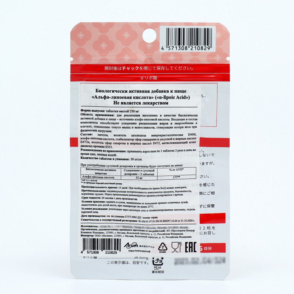 Arum БАД «Альфа-липоевая кислота»-25%