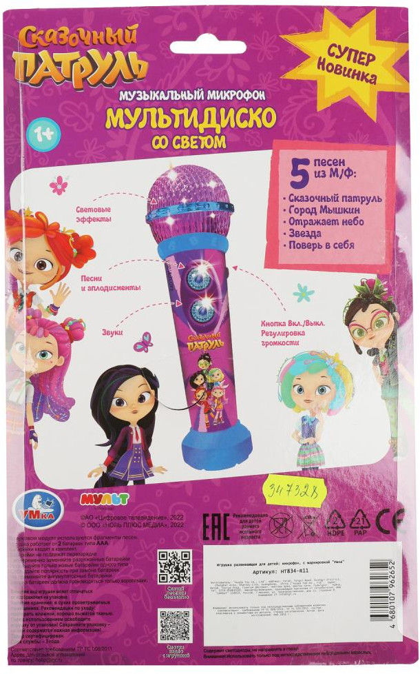 💳 Оплатить за товар можно при получении 🇰🇿 Есть бесплатная доставка по Казахстану от 1 дня 🎁 Копите бонусы с каждой покупки Серия: Сказочный патруль Музыкальный микрофон со светом «Сказочный патруль. Мультдиско» ТМ «УМка» — отличный подарок для маленьких поклонников мультсериала про юных волшебниц. Маленькому артисту непременно понравится этот яркий микрофон Он с удовольствием будет слушать песенки из популярного мультсериала или выступать самостоятельно. |