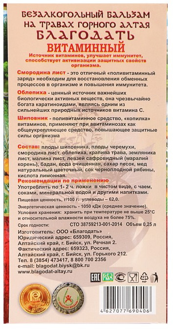 Благодать с Алтая Бальзам витаминный «Благодать»
